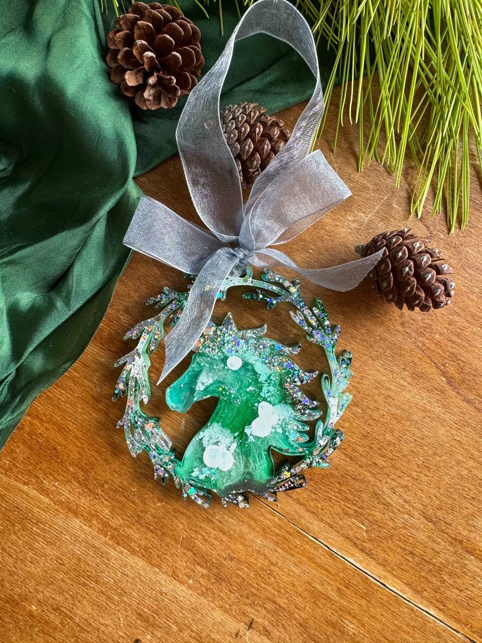 Aggiungi un tocco di eleganza e magia al tuo Natale con questa decorazione artigianale: un unicorno racchiuso in una delicata ghirlanda natalizia 🎄🦄.